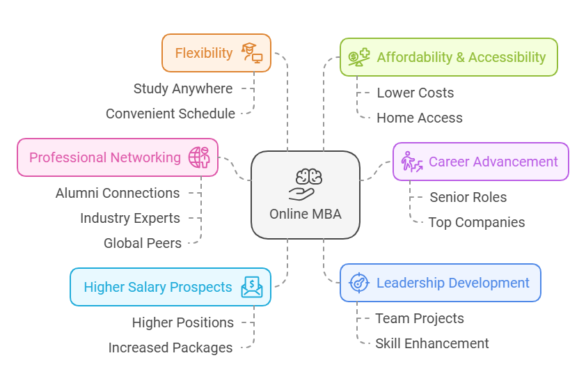 6️⃣ Affordability & Accessibility: An online MBA costs less than a regular MBA programme. It saves you additional costs such as travel, housing rent, and other living expenses. You could simply access this course from your home for the entire curriculum.